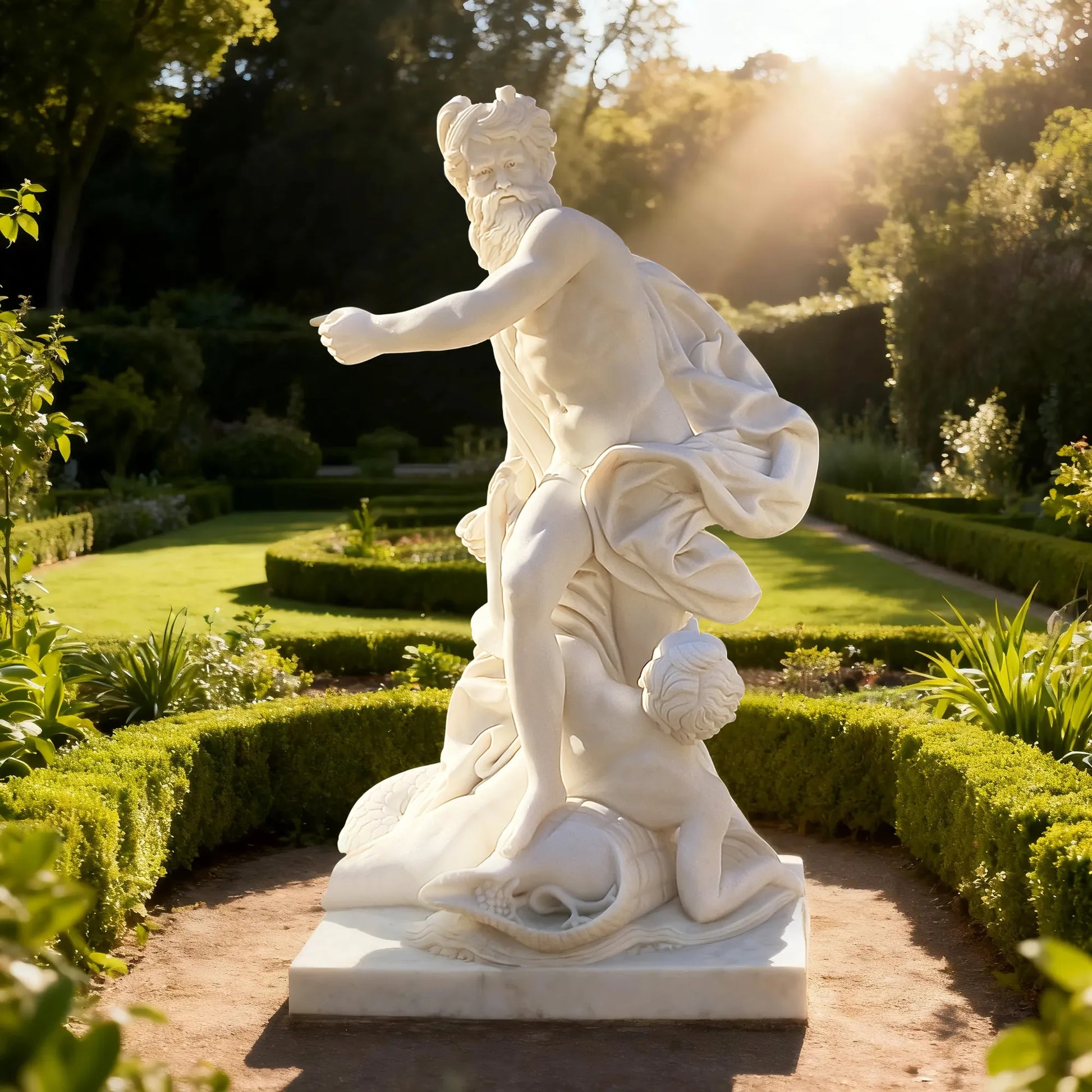 This exceptional work of art is more than a statue—it is a statement of grandeur and timeless craftsmanship. Ideal for outdoor spaces such as villa courtyards, gardens, fountains, or coastal estates, it transforms its surroundings with an atmosphere of drama, elegance, and mythological reverence.